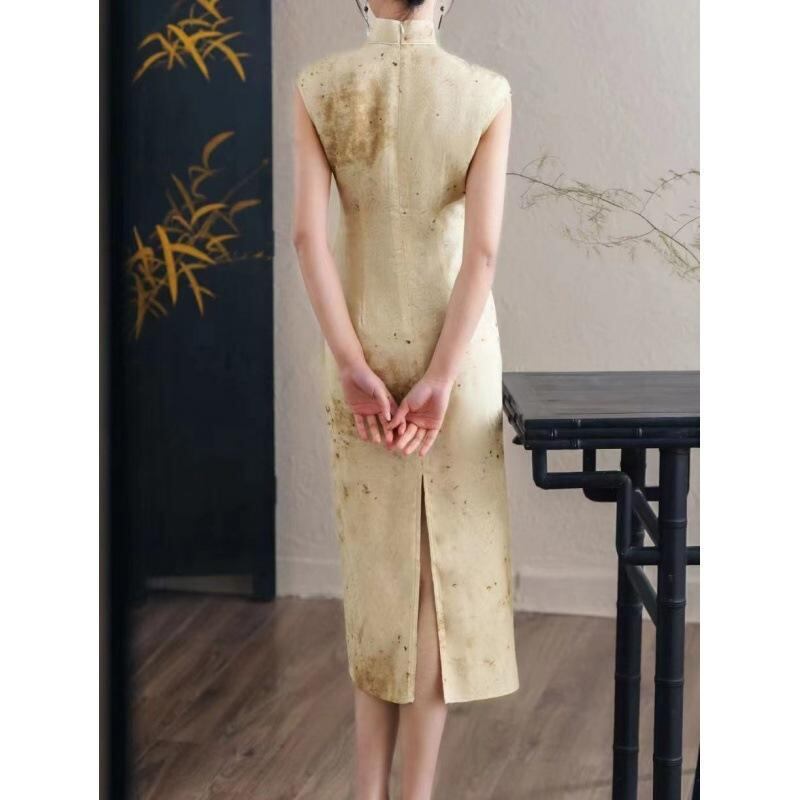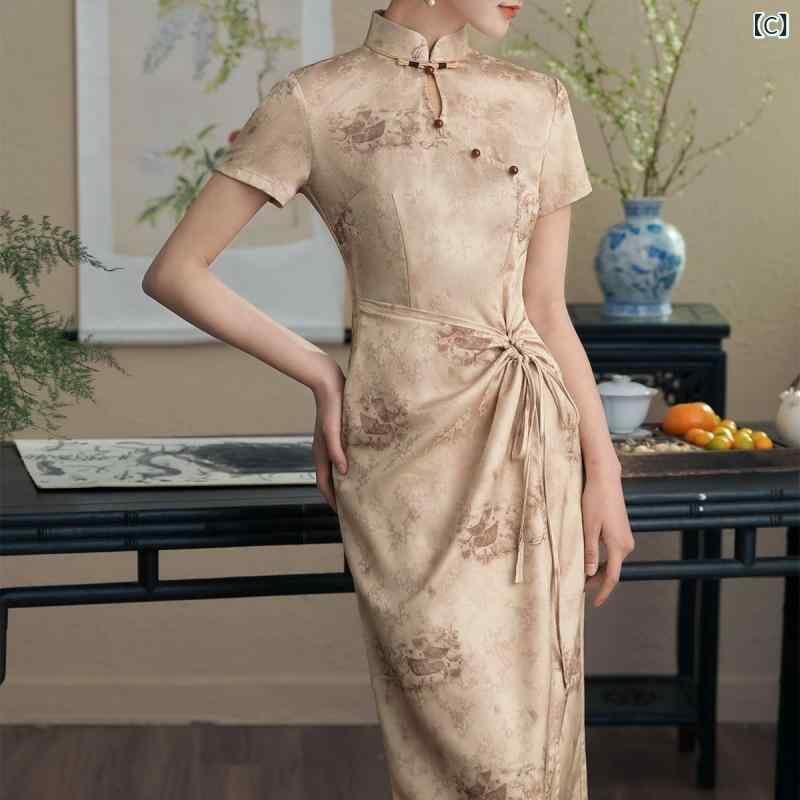 チャイナドレス ワンピース レディース 春夏 中国風 エレガント 上品 レトロ 高級感 スタイルアップ 改良 ロング丈 ホルターネック ノースリーブ スリット リヨセル繊維 フォーマル パーティー
