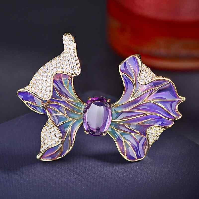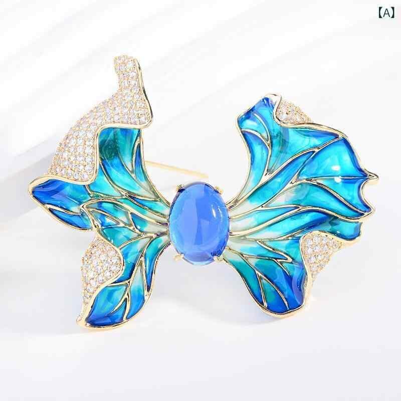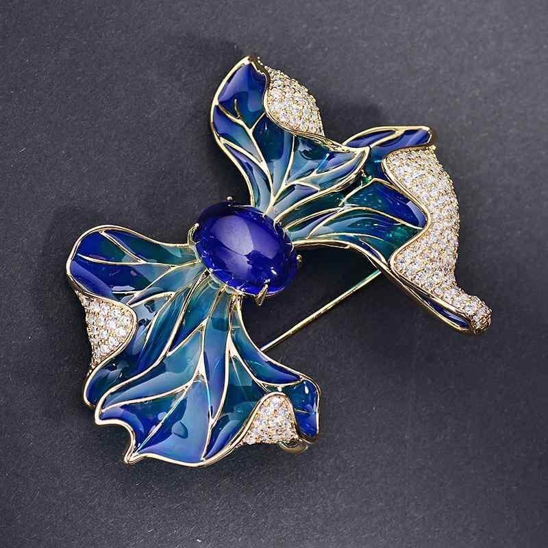ブローチ レディース エレガント エナメル ジルコニア フラワーモチーフ 個性的デザイン 高級感 存在感 銅製 電気メッキ加工 ブルー パープル フォーマル カジュアル パーティー
