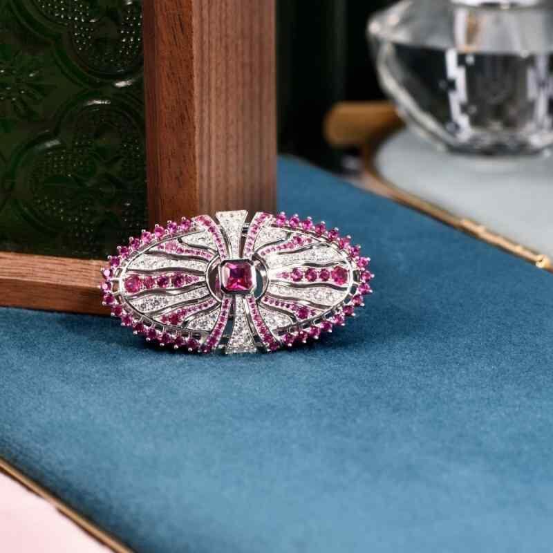 ブローチ 純銀 シルバー925 ルビー ジルコニア 精密装飾 高級感 エレガント 上品 ファッション小物 万能 着回し アクセント 春夏 ギフト プレゼント
