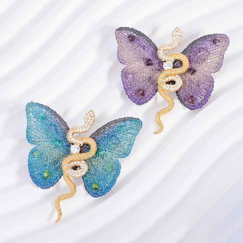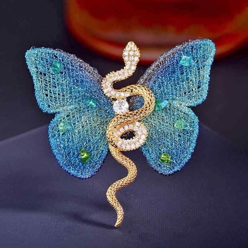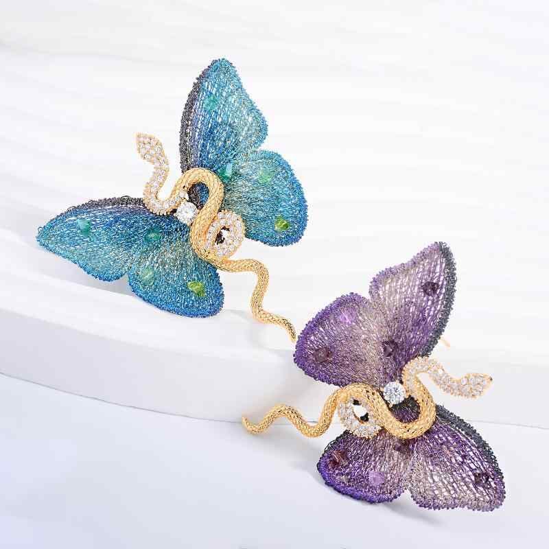 ブローチ 胸飾り ピン レディース 蝶 蛇 動物モチーフ 個性的 ユニーク デザイン ジルコニア マイクロパヴェ 銅製 電気メッキ加工 高級感 春夏 ファッション小物