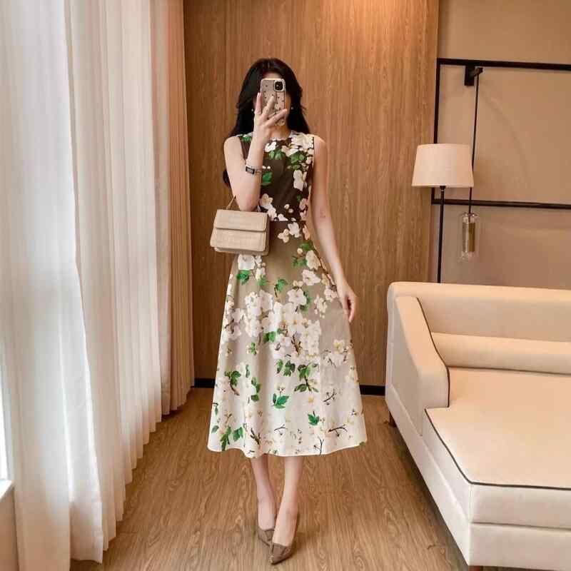ワンピース フレンチ エレガント 立体フラワー 花柄 ウエストマーク 半袖 Aライン コットン 春夏 ドレス スタイルアップ 高見え 上品 お出かけ