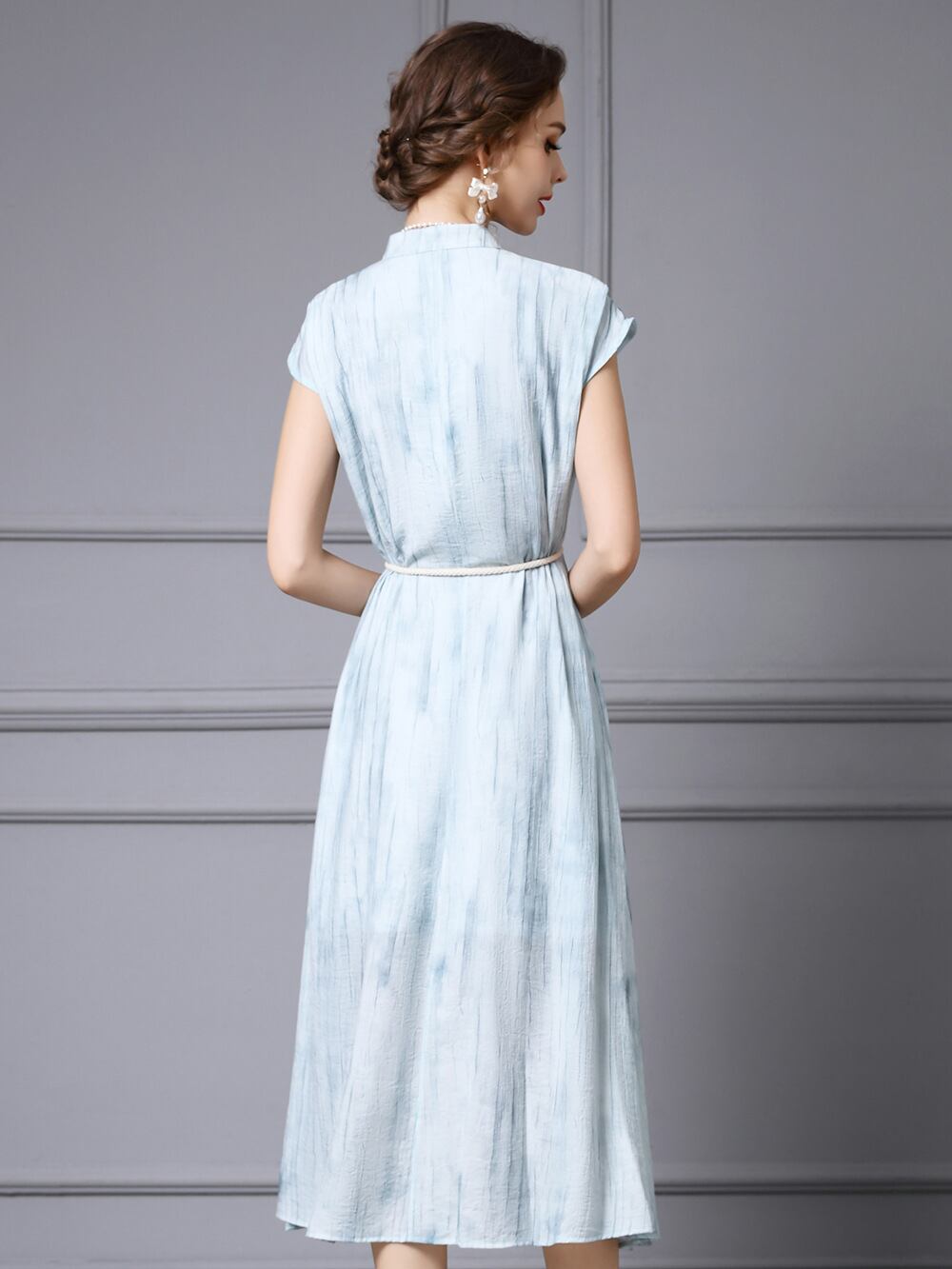 ワンピース レディース 春夏 リゾート風 絞り染め タイダイ 半袖 ゆったり 体型カバー ロング丈 マキシ丈 Aライン Vネック ハイウエスト 裏地付き 高級感 レーヨン エレガント