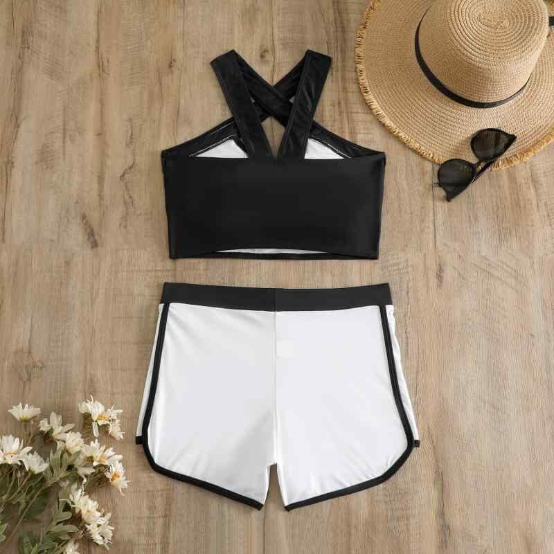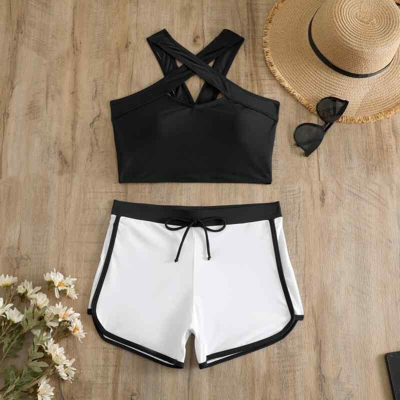 水着 レディース セパレート 2点セット カジュアル リゾート ショートパンツ バイカラー パッド付き ワイヤーなし ポリエステル スイミング 春夏
