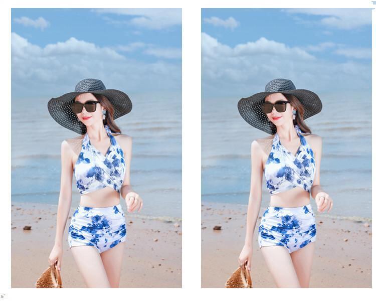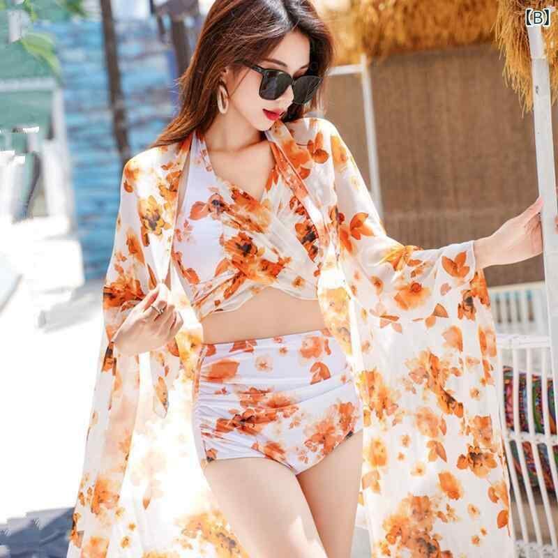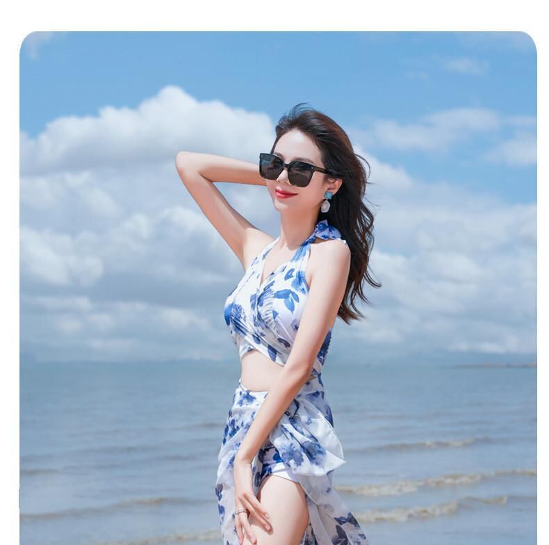 水着 レディース 体型カバー 小胸対応 下半身隠し セパレート 3点セット ビーチ リゾート プール 海水浴 温泉 高級感 春夏 再生繊維 綿素材 パッド付き ワイヤーなし ブルー オレンジ