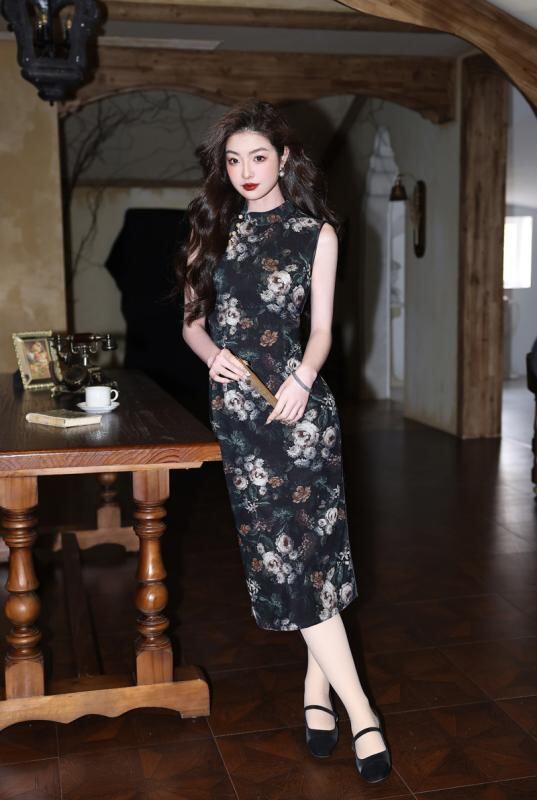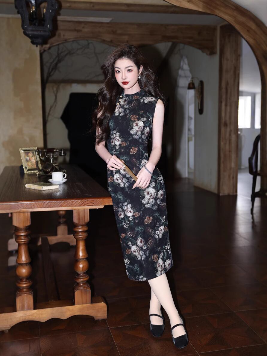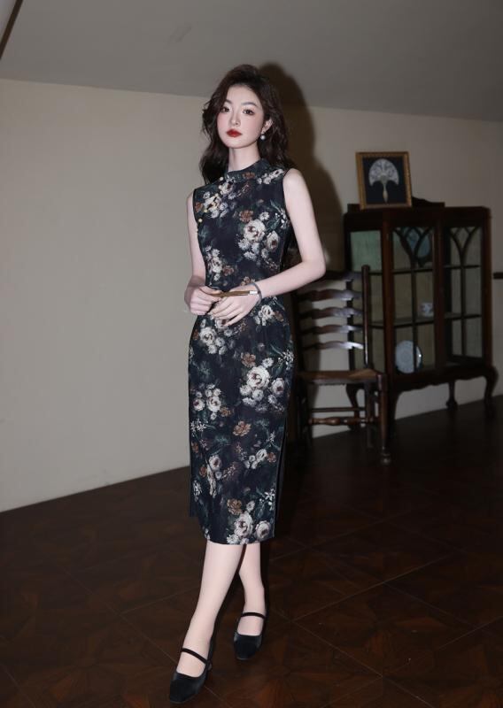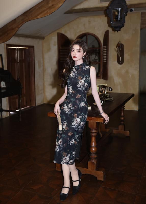 チャイナドレス ノースリーブ スタイリッシュ レディース 中国風 新チャイナ風 向け 少女 ガールズ レトロ 復古調 スリム タイト オールド 古き良き 夏 夏物