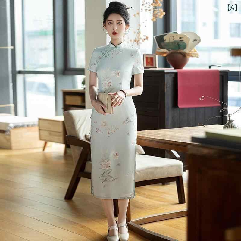 チャイナドレス レディース ワンピース 中国風 春夏 華やか 二重 絹 復古 ロング丈 スタイルアップ
