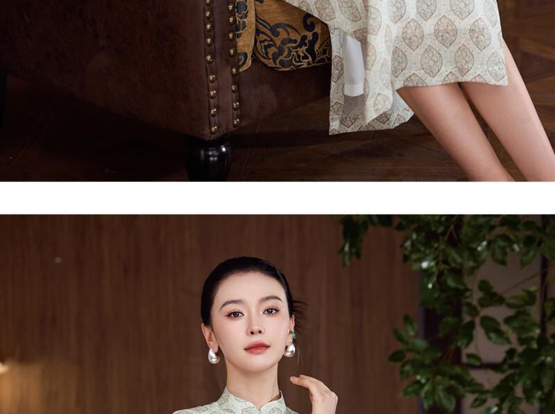 チャイナドレス レディース 改良 レトロ 高級感 テンセル 再生繊維 半袖 普段使い エレガント 春夏 ロング丈 スタンドカラー ストレッチ 花柄