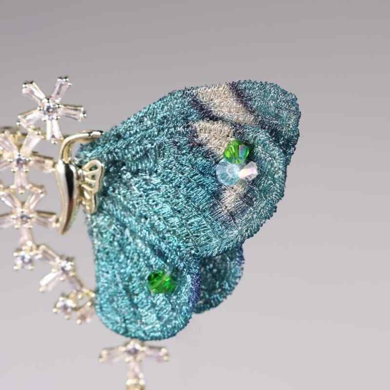 ブローチ レディース 蝶々 刺繡 ロイヤルブルー ジルコニア 高級感 エレガント 上品 華やか スーツ ジャケット フォーマル ピン アクセサリー 混合素材 電気メッキ加工