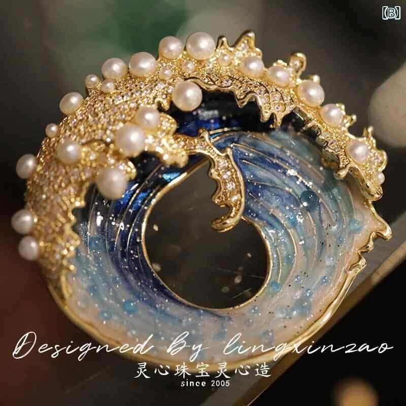 ブローチ 淡水パール レディース セレモニー フォーマル 入学式 おしゃれ 胸飾り 高級感 灵心ジュエリー 海浪 服飾雑貨 胸花