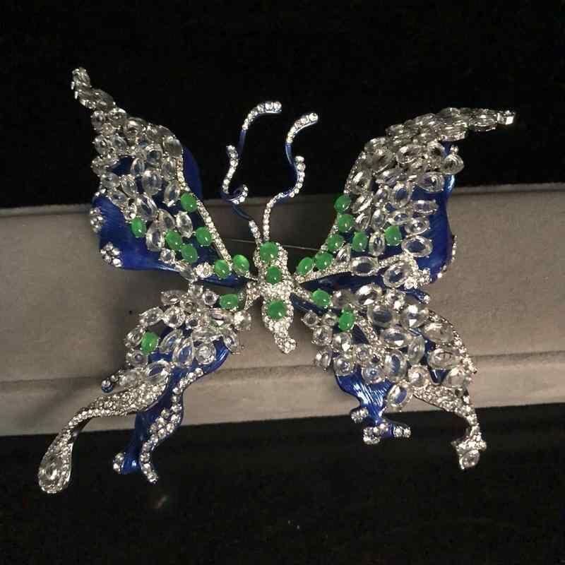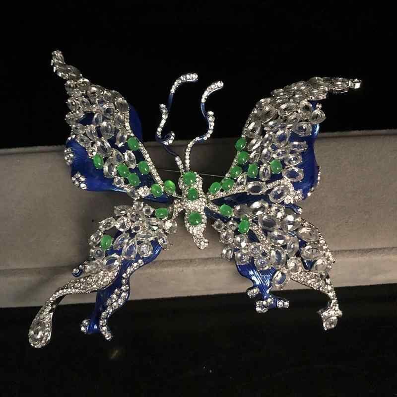 ブローチ レディース 銅製 高級感 ライトラグジュアリー ラインストーン 蝶 バタフライ かわいい 二層 立体 エナメル エレガント フォーマル 普段使い 多用途 結婚式 パーティー ヴィンテージ レトロ プレゼント