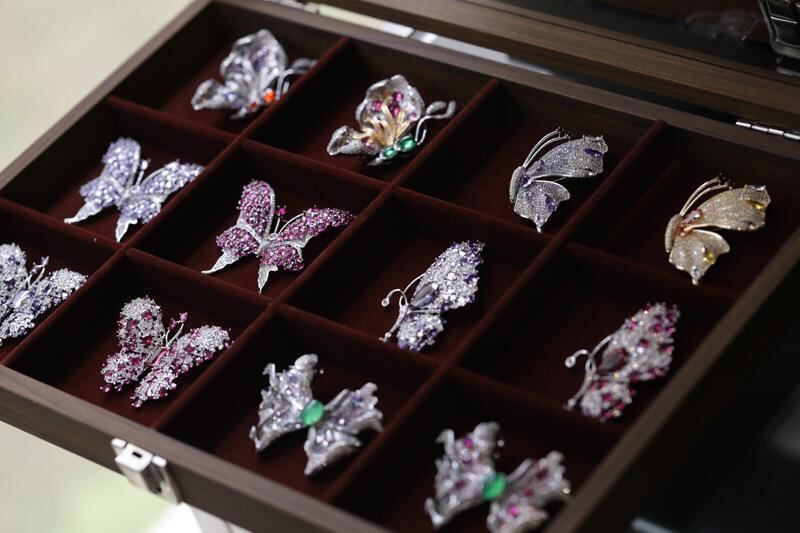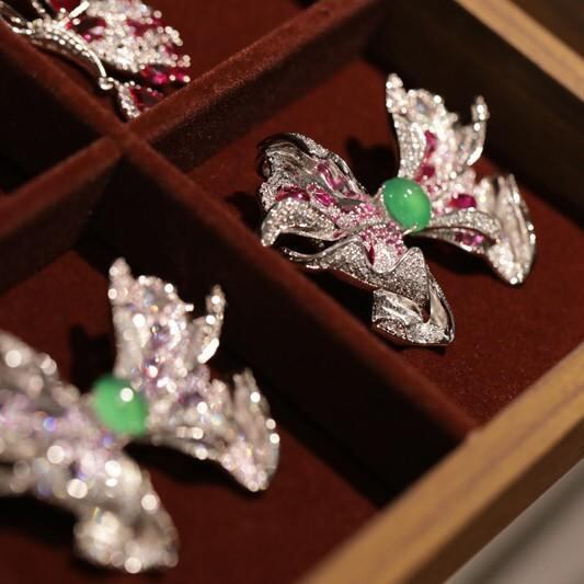ブローチ 男女兼用 高級感 豪華 精巧 蝶 バタフライ ラインストーン アニマルモチーフ コート スーツ ジャケット フォーマル カジュアル プレゼント シルバー パープル ゴールド グリーン