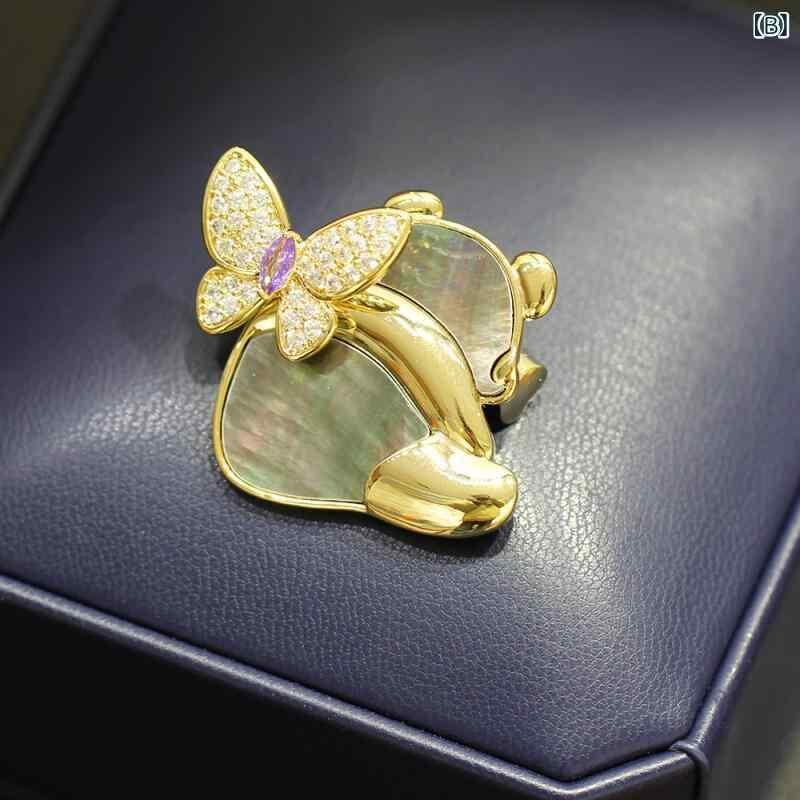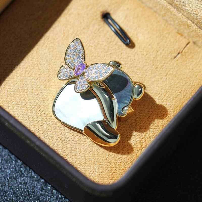 ブローチ 男女兼用 かわいい 天然貝殻 パンダ 動物モチーフ 金メッキ ストーン装飾 ピン 多用途 普段使い 銅製 カジュアル ファッション 春夏 ゴールドベース グレー ホワイト 装飾品 ギフト 記念品