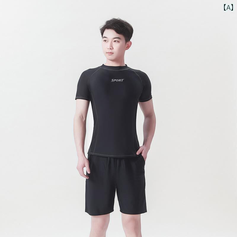水着 メンズ 長袖 UVカット 速乾 通気性 ラッシュガード マリンスポーツ 水泳 春夏 セパレート スイムパンツ セット 大きいサイズ ナイロン ポリエステル ブラック ブルー