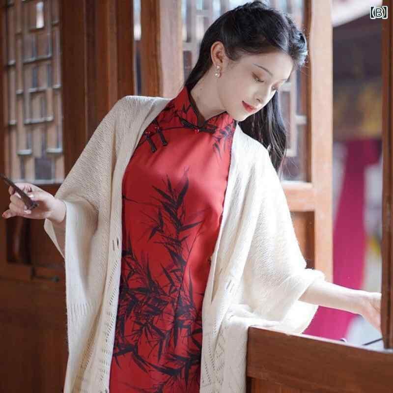 色: ブルー-チャイナドレス, ホワイト-ショール【フリーサイズ】
