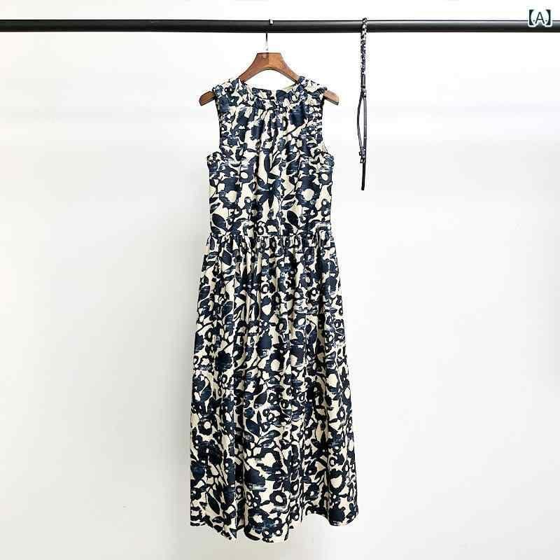 ワンピース ドレス レディース 綿 ポプリン プリント柄 ノースリーブ ホルターネック きれいめ 通勤 オフィス 高級感 リゾート風 カジュアル ロング丈 Aライン ハイウエスト 春夏