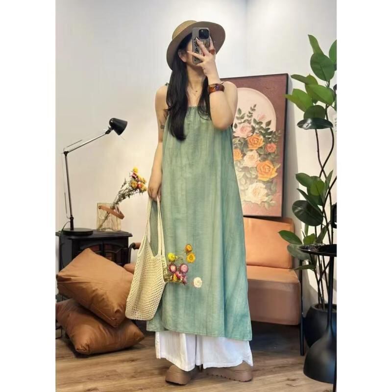 商品仕様: ・素材: 麻、ライセル混紡 ・柄: 無地 ・デザイン: 抽褶、刺繍 ・スカート丈: ミモレ丈 ・スカートタイプ: Aライン ・ネックライン: ラウンドネック ・袖丈: ノースリーブ ・ウエスト: ゆったり ・カラー: 1, 2, 3 ・サイズ: フリーサイズ ・スタイル: 日韓カジュアル ・フロント: プルオーバー ・生地組成: ライセル80-90% ・種類: ワンピース ・袖: ノースリーブ