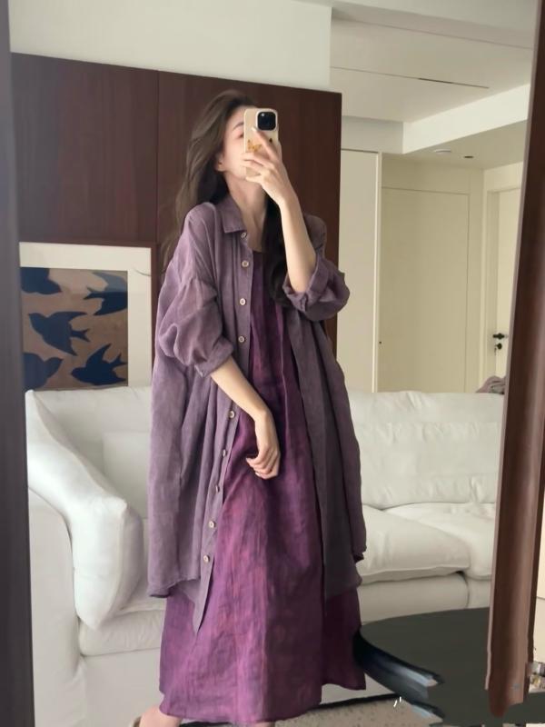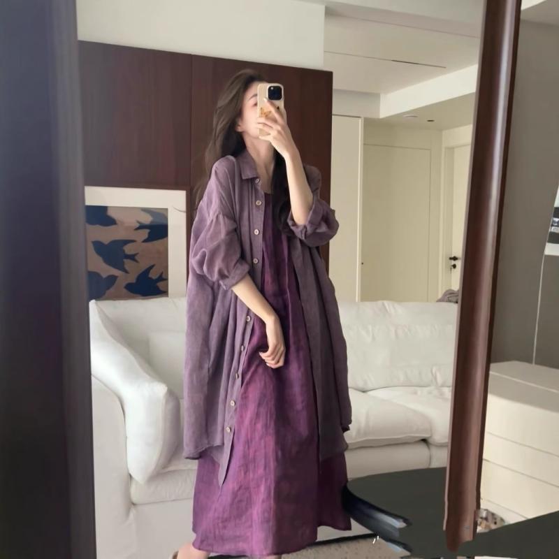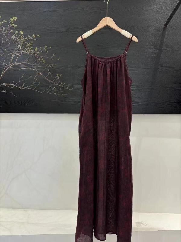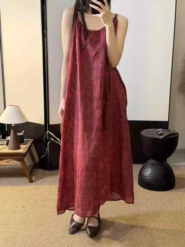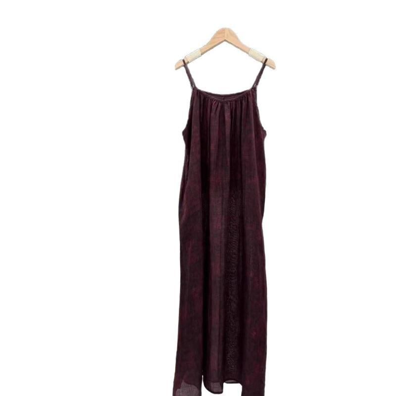 ワンピース レディース 苧麻 ノースリーブ キャミソール ロング丈 Uネック 花柄 春夏 ビーチ リゾート 文芸風 レトロ ルーズウエスト グリーン レッド パープル