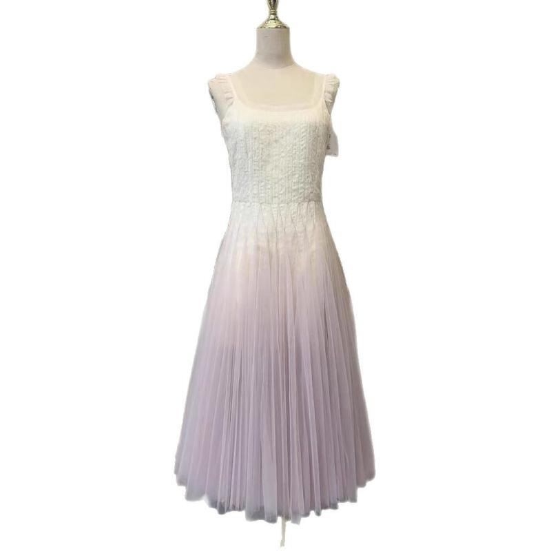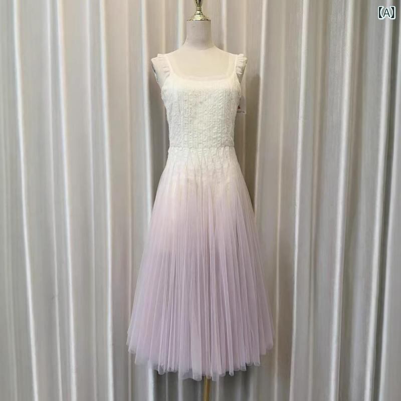 ワンピース レディース フレンチシック エレガント 上品 グラデーションカラー チュール キャミソール スクエアネック フレア Aライン リゾート マキシ丈 夏 ポリエステル素材 通勤 お出かけ