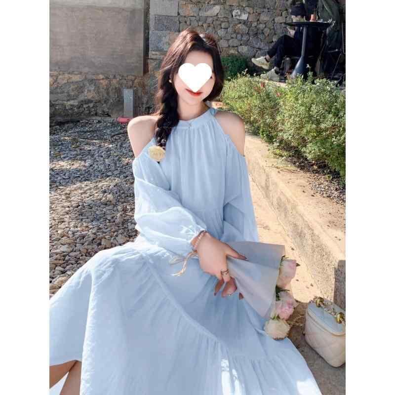 ワンピース レディース Aライン 膝丈ワンピース ポリエステル ドッキングワンピース 無地 長袖 ビーチ リゾート 旅行 海 普段使い おしゃれ ブルー ピンク系