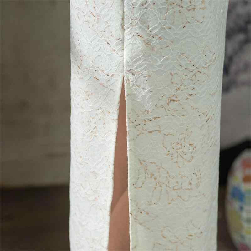 チャイナドレス レディース 複合レース ロング丈 半袖 エレガント 上品 改良 新中国風 普段使い ポリエステル スパンデックス 立襟 ラウンドネック 春夏