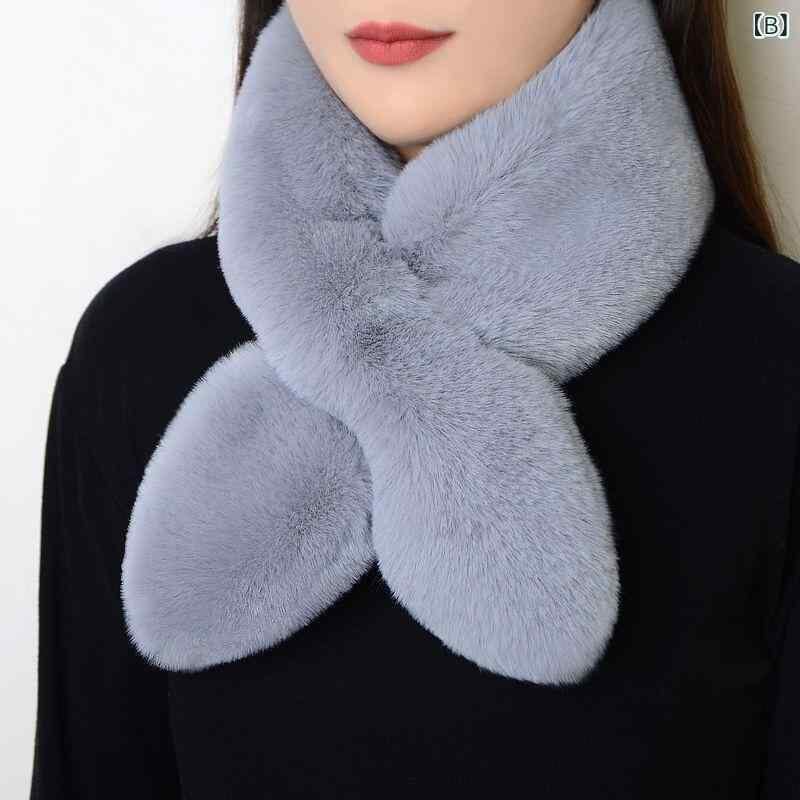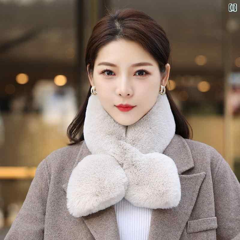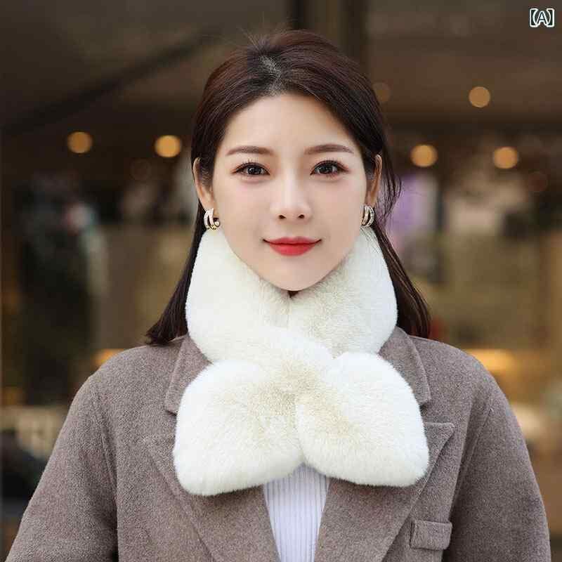 マフラー レディース エコファー ラビットファー調 ハート クロス 厚手 あったか 保温 両面 ふわもこ スヌード ストール 冬 普段使い お出かけ かわいい