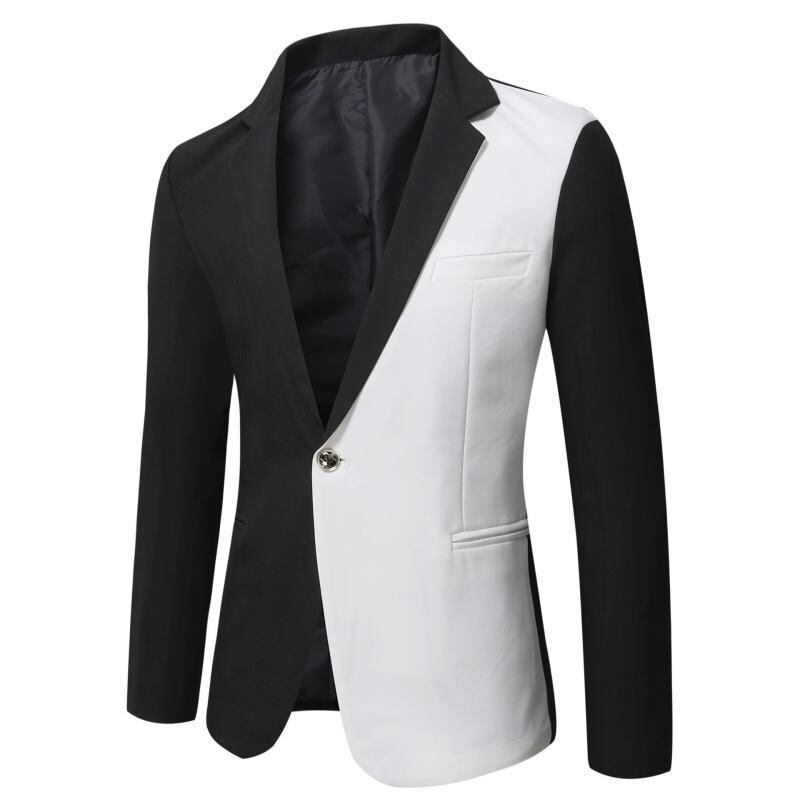 テーラードジャケット メンズ カジュアルジャケット 配色切り替え シンプル スリムフィット シングルブレスト 1つボタン テーラードカラー 長袖 綿混紡 ポリエステル 秋冬
