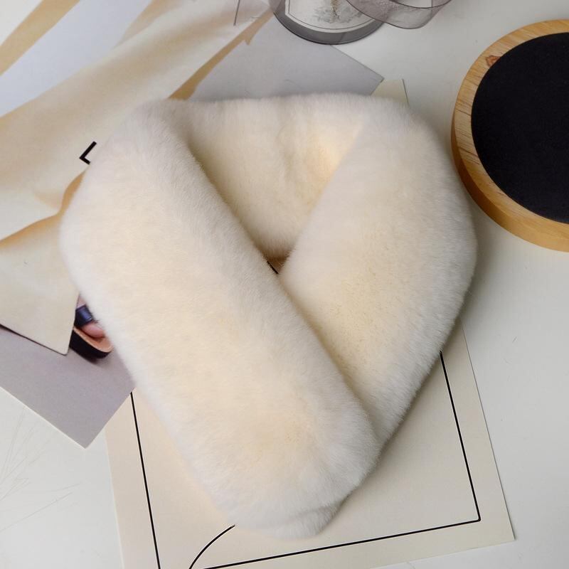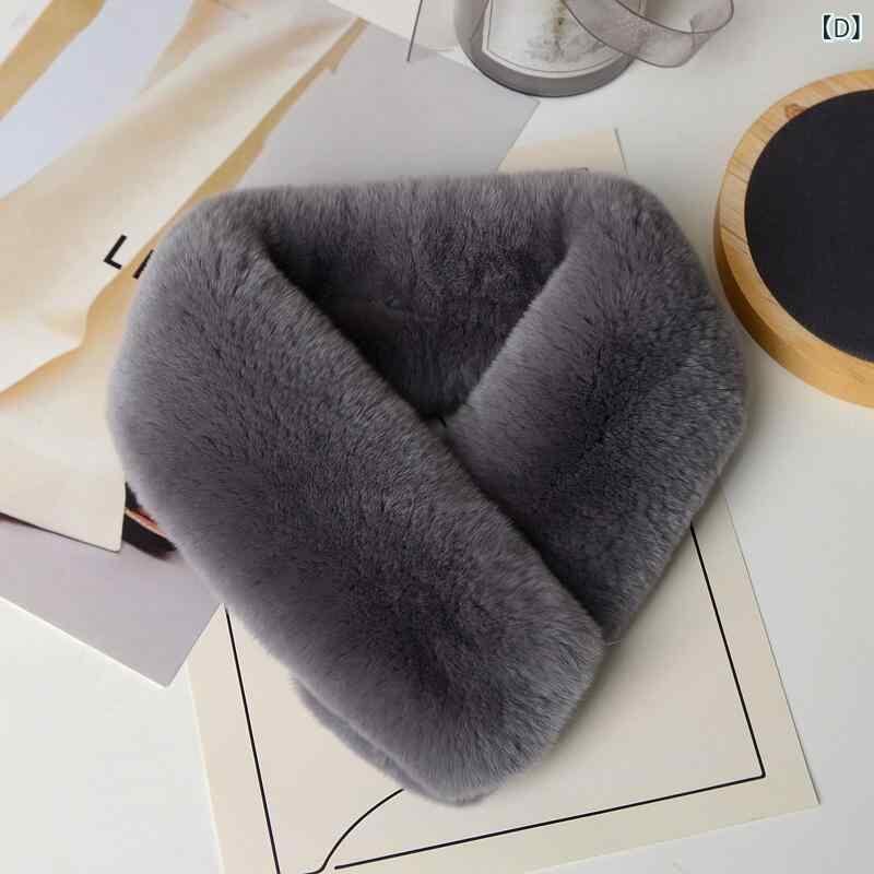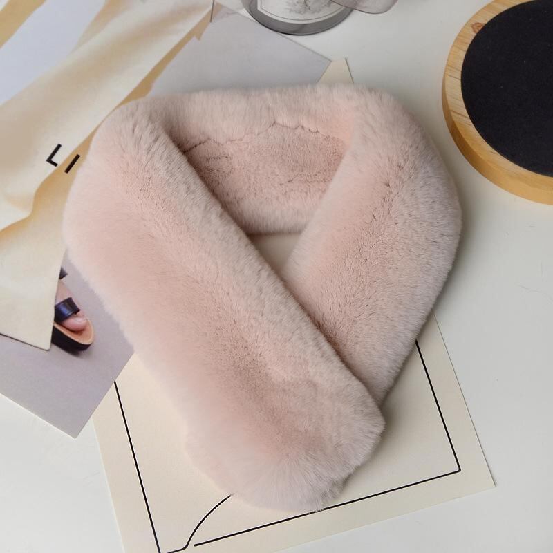 ファーマフラー レディース レッキスラビット リアルファー ティペット ネックウォーマー マグネット留め 両面仕立て 厚手 保温 防寒 無地 秋冬 ブラック グレー ピンク