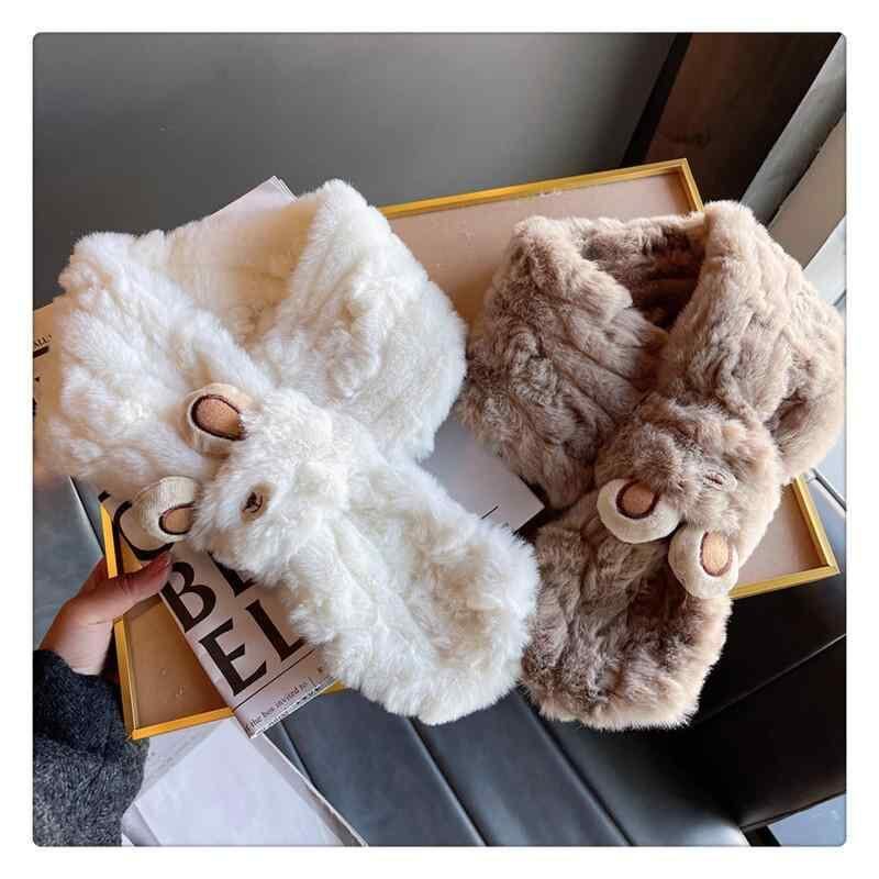 ネックウォーマー レディース 日本風 かわいい キャラクター クマ耳 厚手 ボア 防寒 保温 あったか ふわふわ もこもこ 学生 通学 普段使い 冬物 おしゃれ 柔らかい ベージュ系