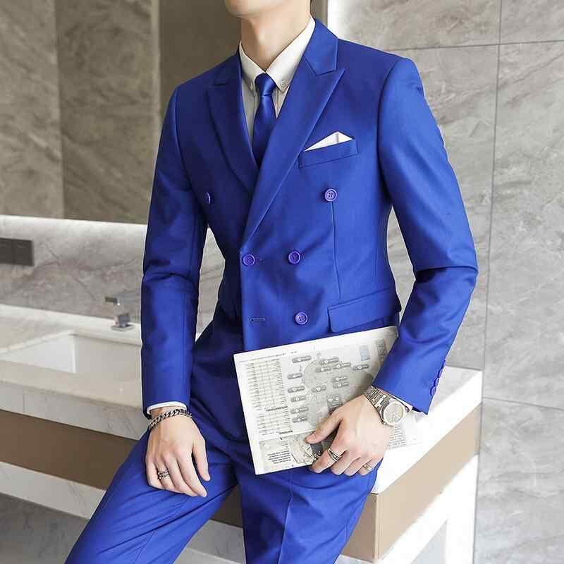 スリーピーススーツ メンズ 男性用 ダブルブレスト スリムフィット 化繊混紡 ビジネス フォーマル 結婚式 披露宴 宴会 パーティー セレモニー 新郎 オールシーズン対応