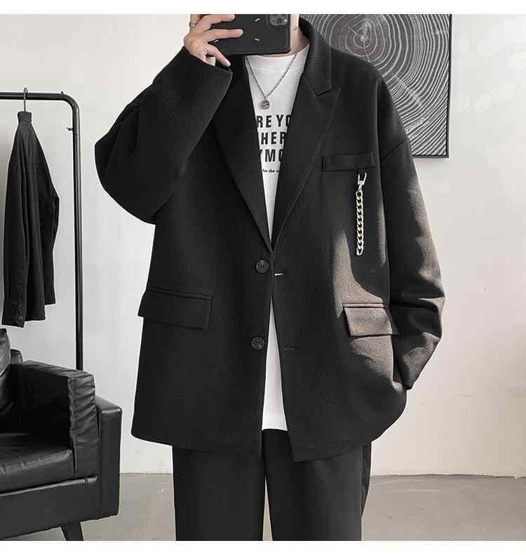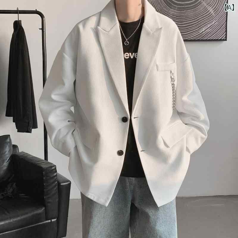 ジャケット メンズ 男性用 ワッフル テーラードジャケット ゆったり リラックスフィット ビッグシルエット 高級感 韓国風 韓流ファッション トレンド 着回し 通勤 オフィス 普段使い 春秋 白 黒
