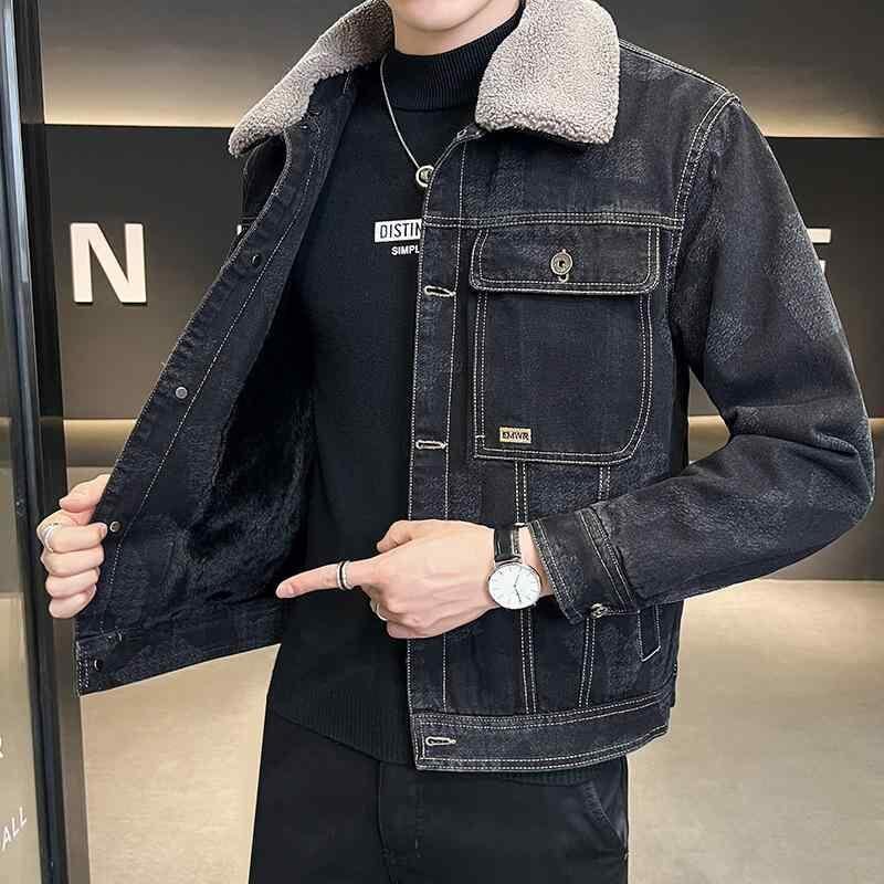デニムジャケット メンズ 秋冬 裏ボア 厚手 取り外し可能 ボア襟 デニム生地 アウター カジュアル スタイリッシュ スリムフィット 前ボタン 防寒着 黒