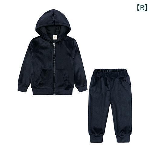 キッズ セットアップ 男女兼用 男の子 女の子 秋冬 ベロア 上下セット 長袖 ジップアップパーカー ロングパンツ スポーツカジュアル 部屋着 ルームウェア 柔らかい 肌触り ポリエステル 通園 通学