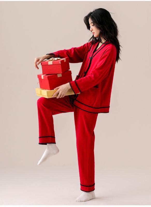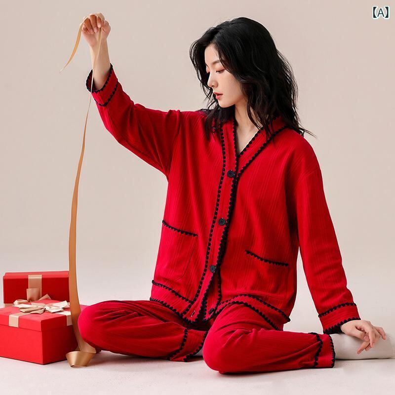 パジャマ レディース 長袖 コットン 春秋 ルームウェア 部屋着 上下セット Vネック シンプル かわいい 韓国風 高級感 快適 リラックス 伸縮性 ワンマイルウェア