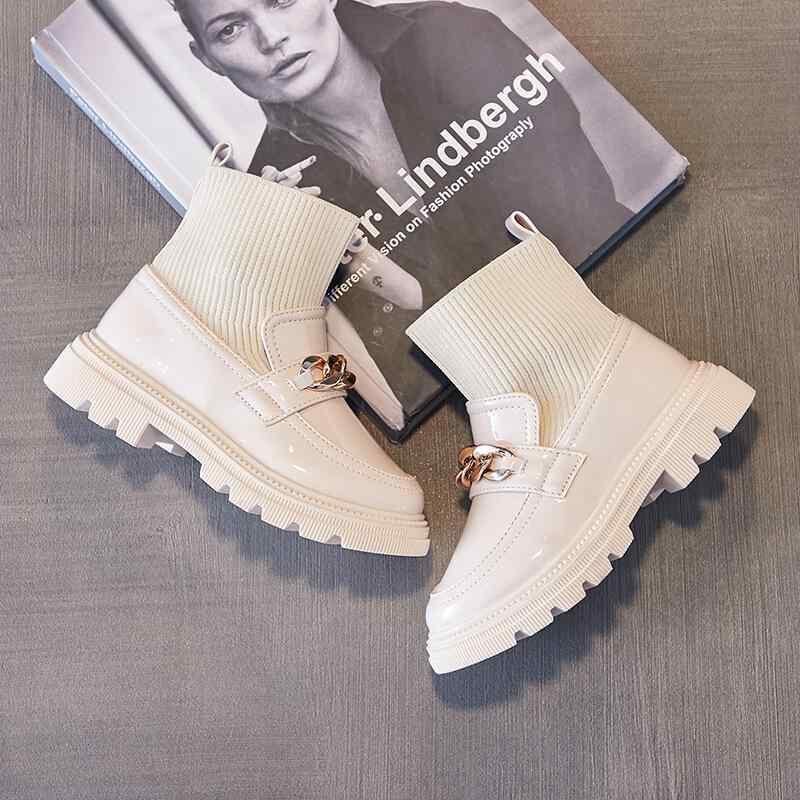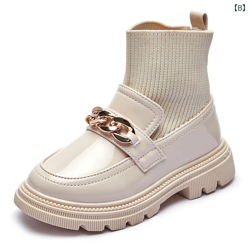 ブーツ キッズ 男の子 女の子 ジュニア ソックス レザー ニット ストレッチ スリッポン 英国風 裏起毛 耐摩耗 秋冬 トレンド