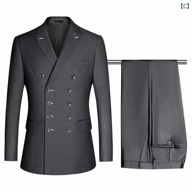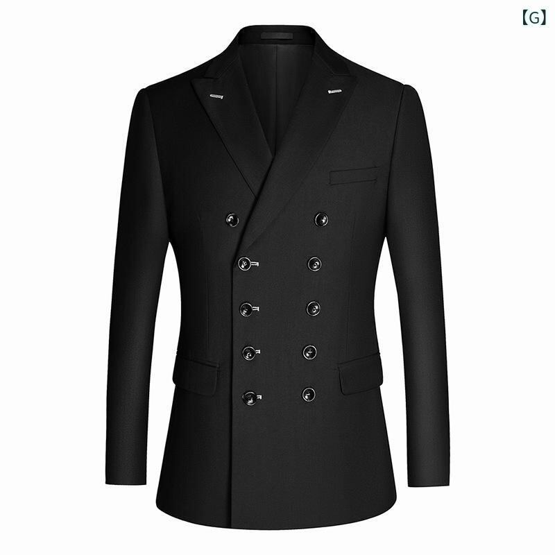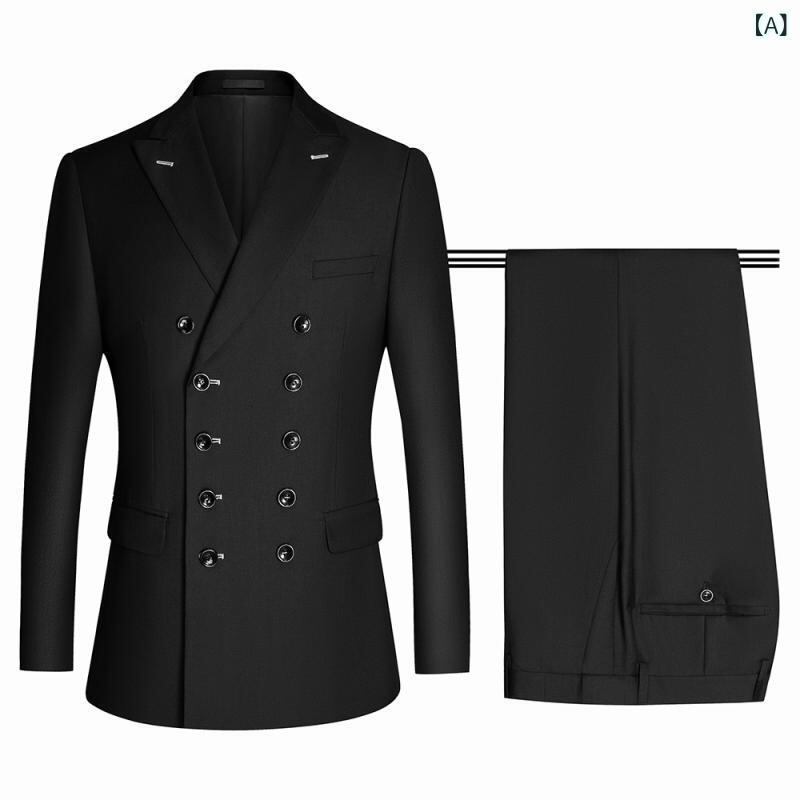 スーツ メンズ 男性用 ダブルブレスト スリムフィット 細身 ビジネス カジュアル フォーマル 通勤 オフィス 普段使い ジャケット パンツ セットアップ ネイビー ブラック グレー 化学繊維混紡 アセテート 定番