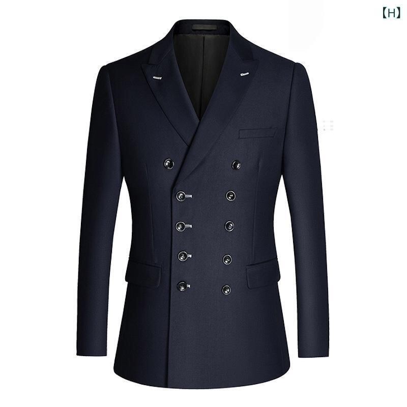 ・デザイン詳細: フラップポケット、幅広ピークドラペル、左右ラペル白フラワーホール
