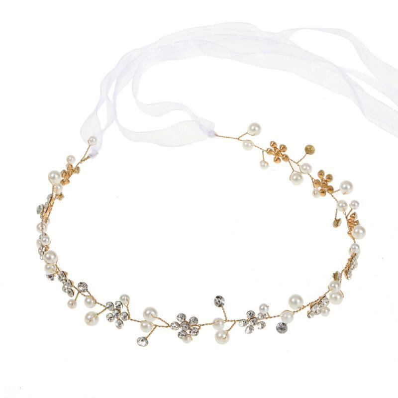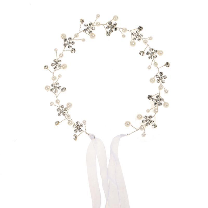 ヘッドドレス 花嫁 ブライダル ウェディング 髪飾り ソフトチェーン 小花 フラワーモチーフ フルラインストーン クリスタル 合金製 ハンドメイド 結婚式 披露宴 二次会 パーティー シルバー ゴールド