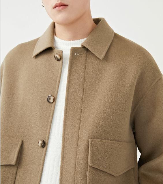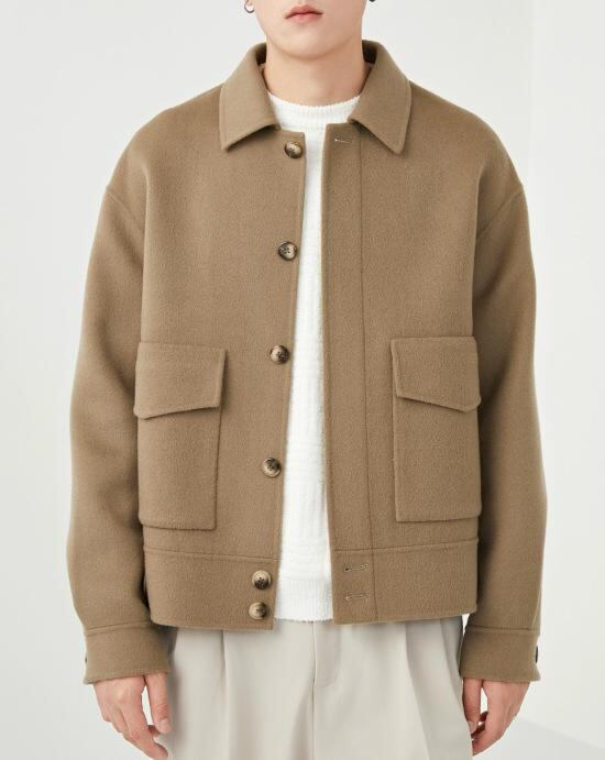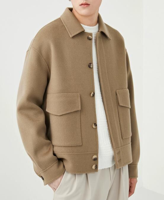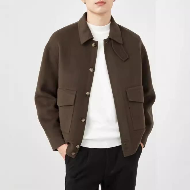 コート メンズ 秋冬 ウール メルトン ダブルフェイス ショート丈 無地 ゆったり ルーズフィット 韓国風 コリアン ファッション おしゃれ ビジネス カジュアル アウター