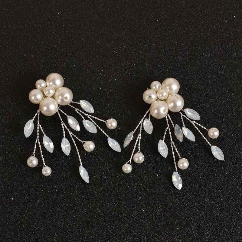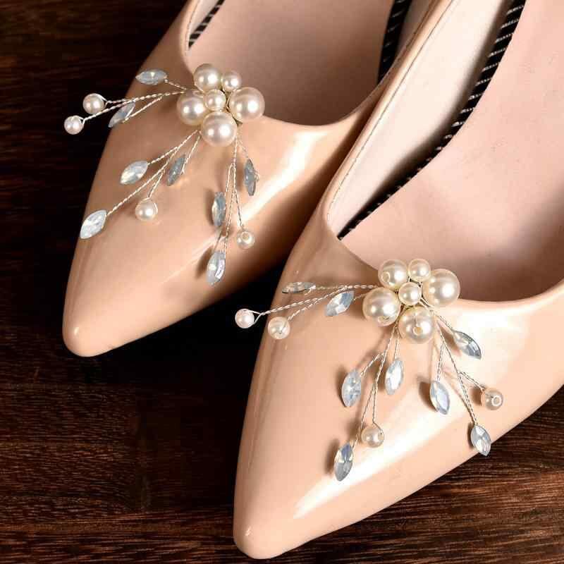 シューズクリップ レディース ブライダル パール 馬眼形ジルコニア 取り外し可能 淡いブルー 靴飾り ウェディングパーティー