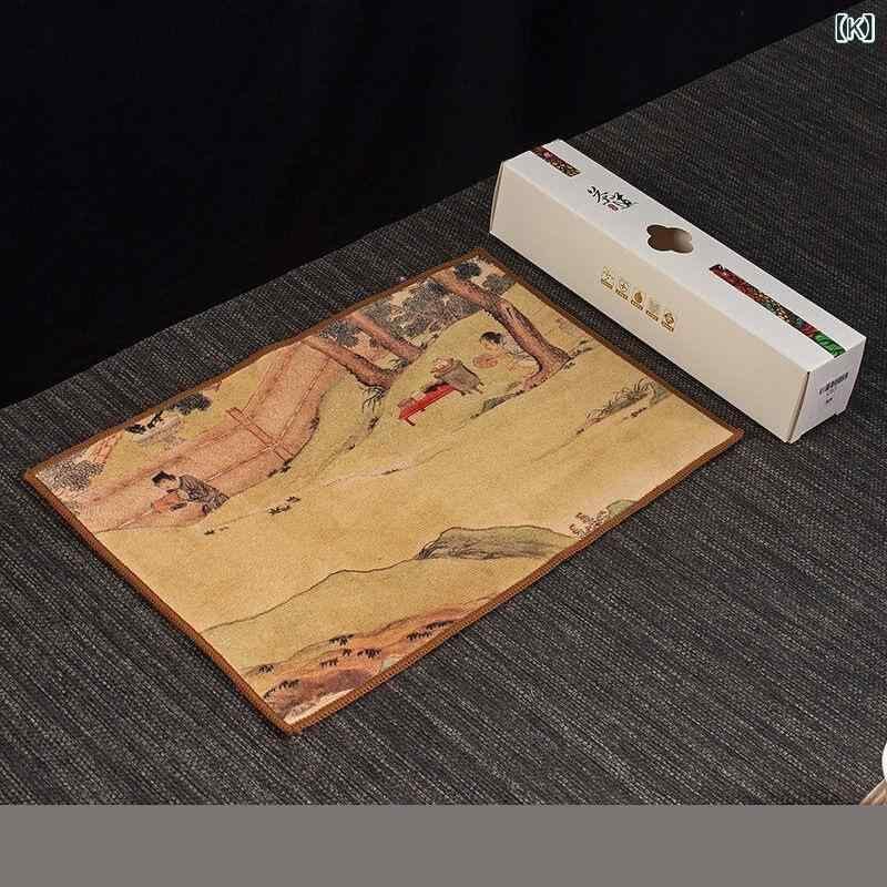 茶巾 ティーマット 茶席 テーブルクロス 吸水性 速乾性 ファブリック ティーポット拭き 家庭用 自宅用 茶道用 禅意 和モダン シンプル おしゃれ ナチュラル 山水柄 吉祥柄