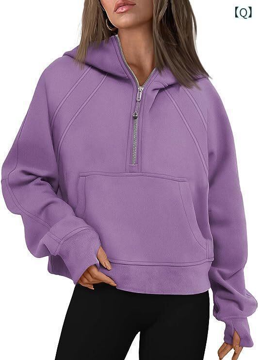 パーカー レディース 女性用 秋冬 ヨガ スポーツ カジュアル スキューバ ハーフジップ スウェット トレーナー ゆったり ショート丈 裏起毛 ポリエステル 中厚手 切り替え