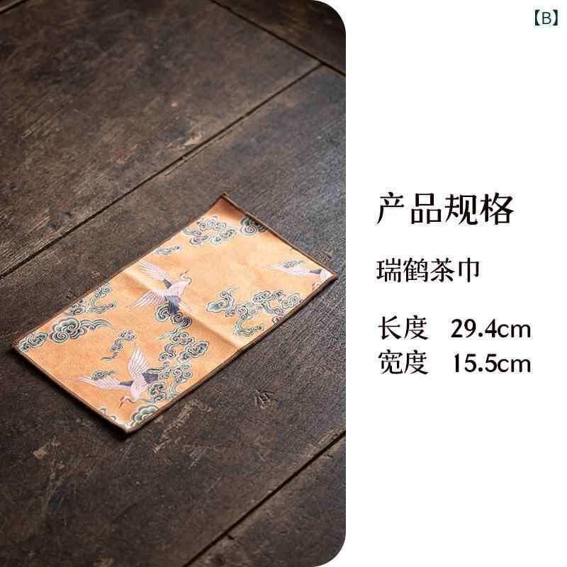 茶巾 厚手 高級感 吸水 速乾性 布製 和モダン 禅風 ティーマット 中国茶器 茶道具 ふきん タオル 鶴柄 上質 来客 おもてなし