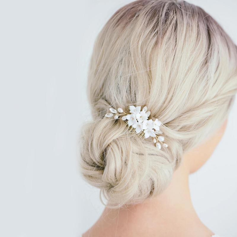 ヘアコーム レディース ブライダル ウェディング ホワイト ゴールド シルバー 陶器 セラミック 金属製 フラワー 花 手作り ハンドメイド 髪飾り ヘアアクセサリー 結婚式 パーティー フォーマル