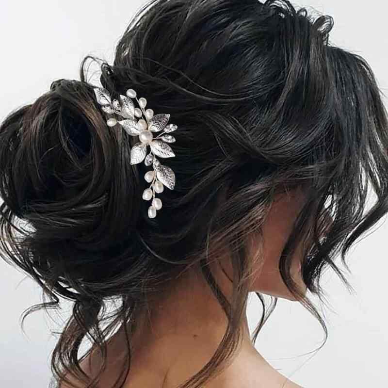 髪飾り レディース シルバー リーフ パール 簪 Uピン ヘアアクセサリー ハンドメイド ウェディング 結婚式 ブライダル 花嫁 ヘッドドレス フォーマル お呼ばれ パーティー
