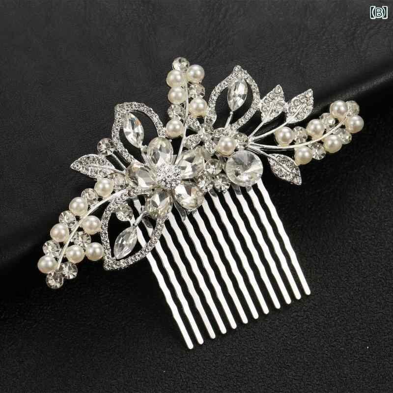 ヘアアクセサリー レディース 合金製 ジルコニア装飾 ゴールド シルバー 上品 エレガント 結婚式 ブライダル ウェディング パーティー 花嫁 髪飾り ヘアコーム ヘッドドレス