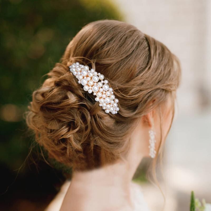 ヘアクリップ レディース 女性用 ウェディング パール装飾 レトロ ヴィンテージ スプリングクリップ バレッタ 髪留め 結婚式 披露宴 パーティー ゴールド 上品 華やか エレガント かわいい 韓国風 合金