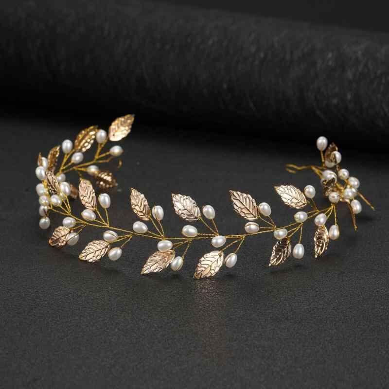 ヘアアクセサリー レディース ゴールド リーフ ワイヤー パール ハンドメイド ソフトチェーン ヘアバンド ヘッドドレス 髪飾り 花嫁 結婚式 ブライダル フォーマル