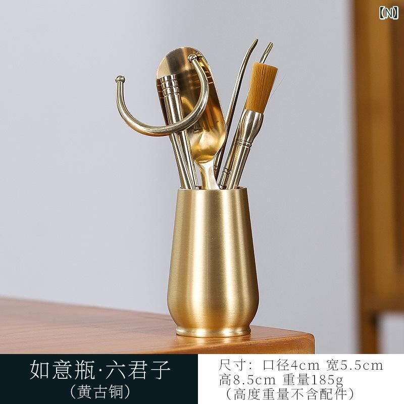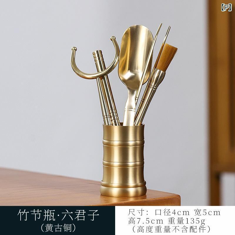 茶道具 真鍮製 茶道六君子 プーアル茶刀 茶筒 茶挟 茶杓 茶針 養壺筆 セット お茶会 茶席 自宅用 モダン 中華風 高級感あふれる本格茶具 職人技 金属製