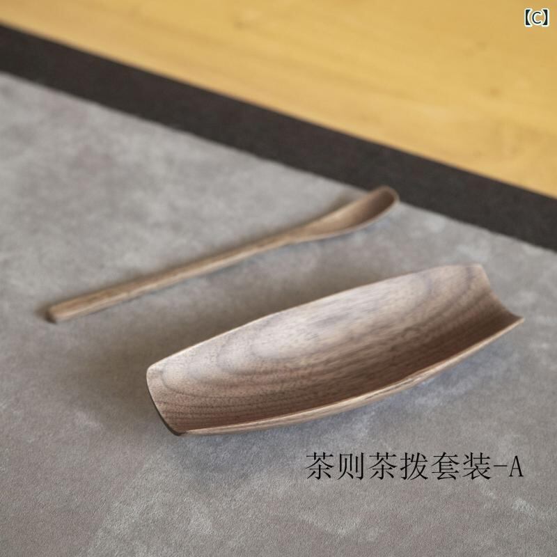 茶道具 ブラックウォルナット 黒クルミ材 茶則 茶杓 茶匙 セット 高級感 上質 禅スタイル 和モダン 無垢材 天然木 家庭用 自宅用 中国茶器 茶道小物 ナチュラルカラー