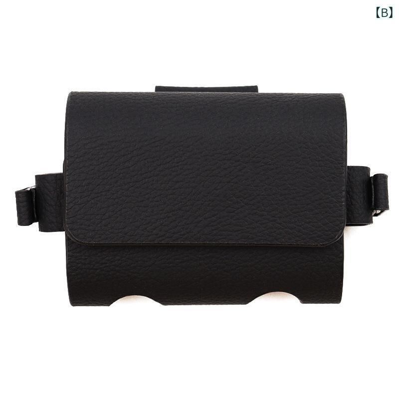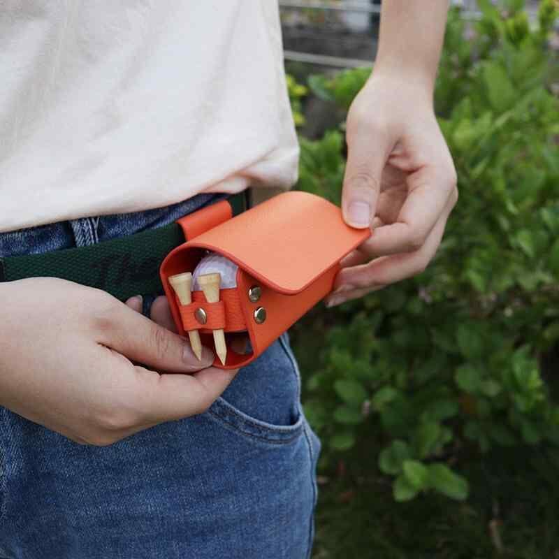 ゴルフポーチ フリップ式 ベルト装着 ウエストポーチ レザー製 ゴルフボール ティー収納 ラウンド用品 小物入れ 練習用 防水 ブラウン ブラック